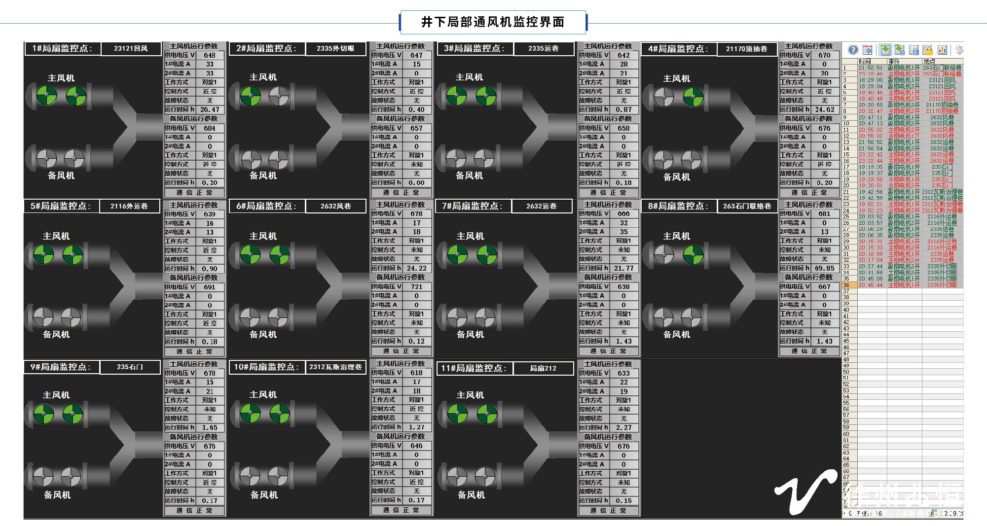 3)能對每部局部通風(fēng)機的主要運行信息進(jìn)行記錄,主要包括:主副風(fēng)機的開停狀態(tài)、運行時間、切換時間等。信息的保持時間大于一年。