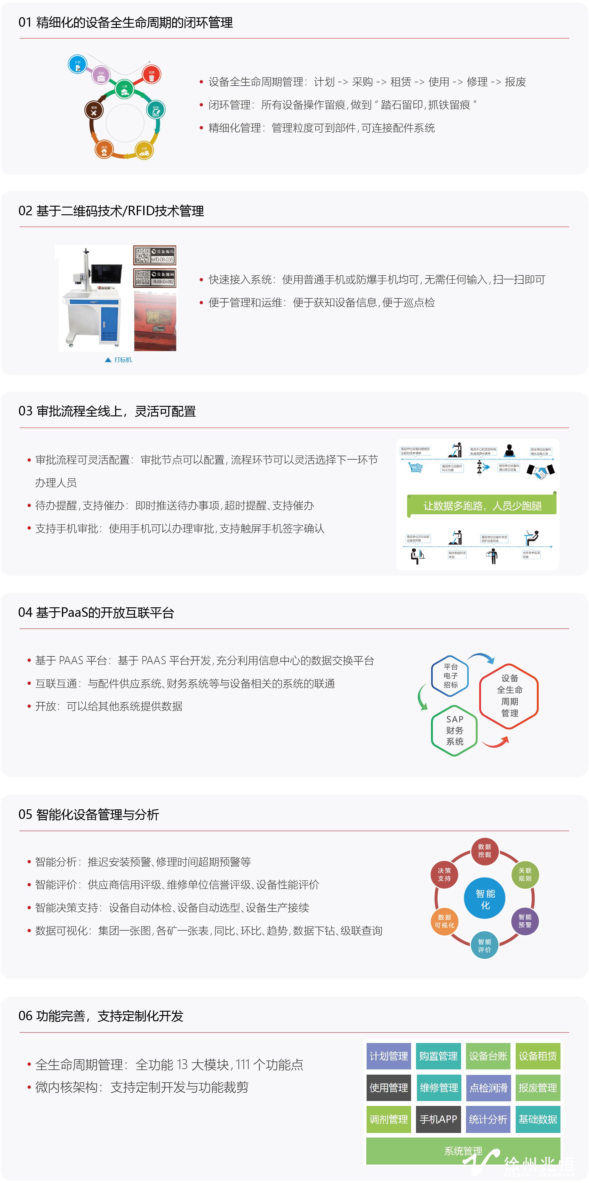 集團公司級設備生命周期管理系統(tǒng)以智能管理數字化平臺為支撐,采用B/S架構,內容涵蓋計劃、采購、合同、出入庫、租賃、維修、點巡檢、報廢、生產接續(xù)、調劑等關鍵環(huán)節(jié),實現對所有設備進行信息快速識別、采集、記錄、上傳,以及設備的盤點、巡檢、維護信息進行快速的查詢、統(tǒng)計分析等,建立完整、準確的公司資產管理數字化信息的管理系統(tǒng),提供高效實用的高科技管理手段與方法。