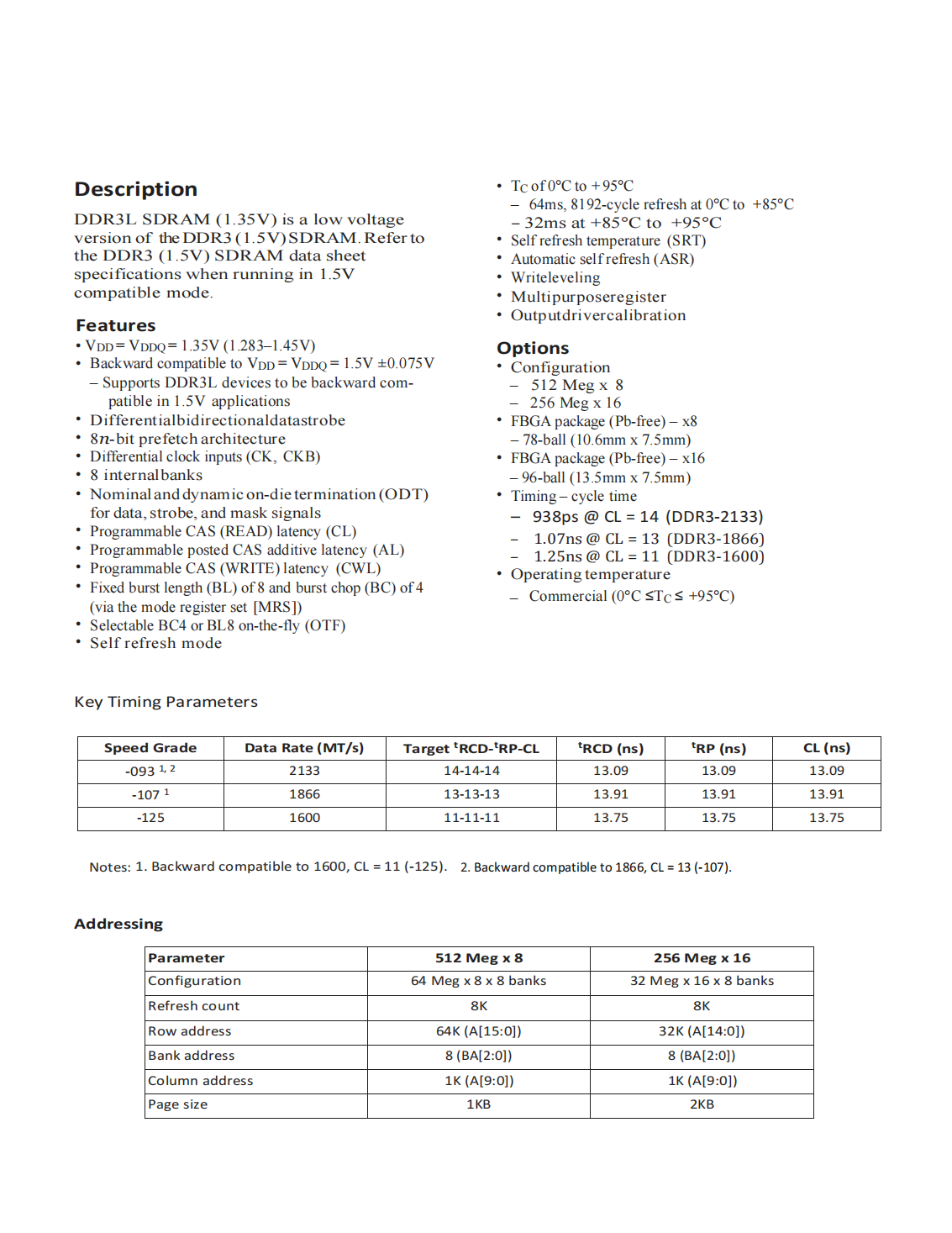 DDR3L SDRAM(1.35V)is a low voltage version of theDDR3(1.5V)SDRAM.Referto the DDR3(1.5V)SDRAM data sheet specifications when running in 1.5V compatible mode.