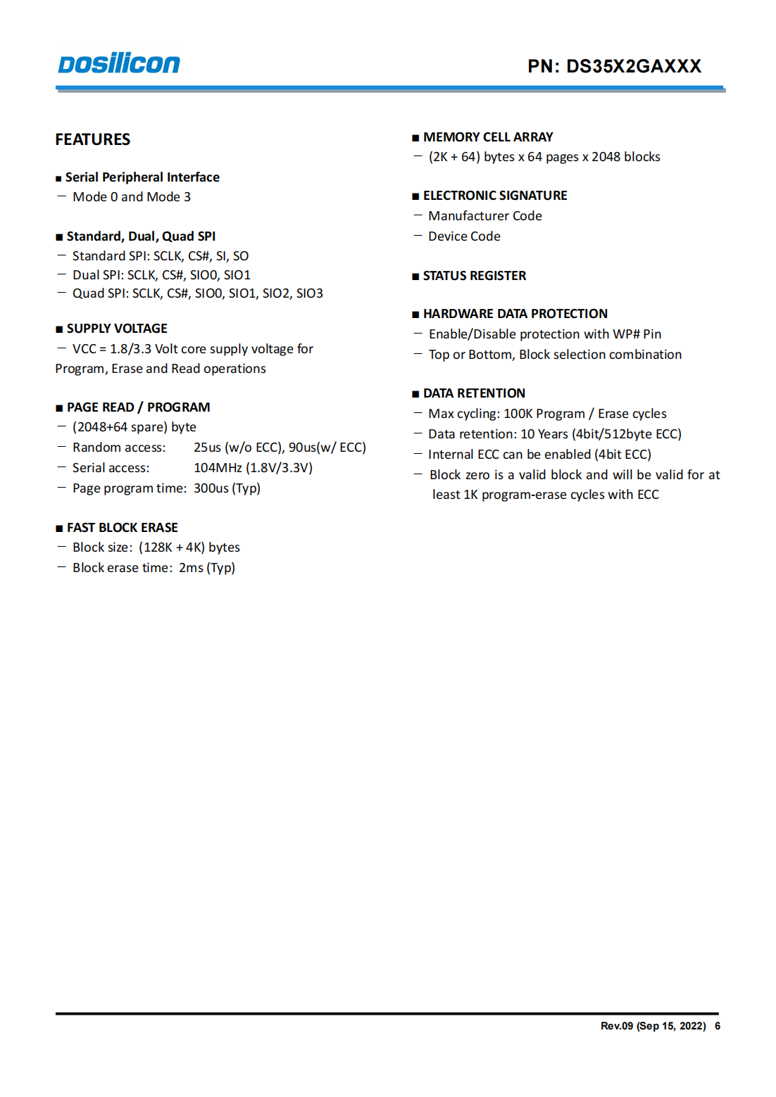 The device is offered in 3.3/1.8 Vcc Power Supply,and with SPI interface.