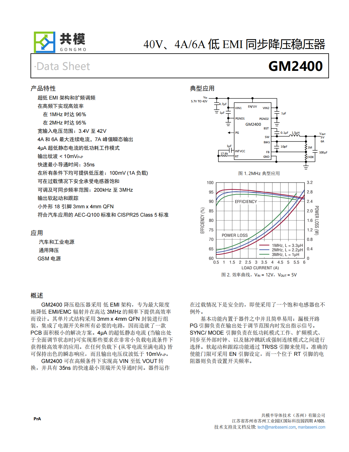 GM2400可在高頻條件下實(shí)現高VIN至低VOUT轉換,并具有35ns的快速最小頂端開(kāi)關(guān)導通時(shí)間。器件運作在過(guò)載情況下是安全的,即使采用了一個(gè)飽和電感器也不例外。